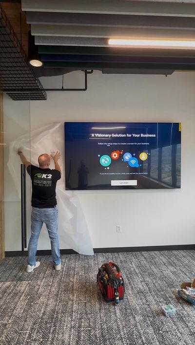 K2 Home Solutions provides professional commercial TV installation and office AV integration throughout Utah. Our team also delivers high end residential TV mounting and home theater installations with the same level of precision and care. We install conference room displays, large format commercial TVs, and business AV systems for offices, restaurants, gyms, retail spaces, and medical facilities.